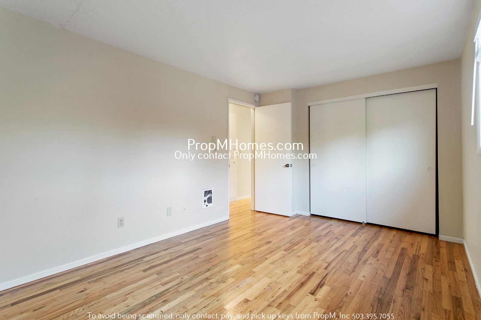 -Two bedrooms with wood floors, closets, and large windows