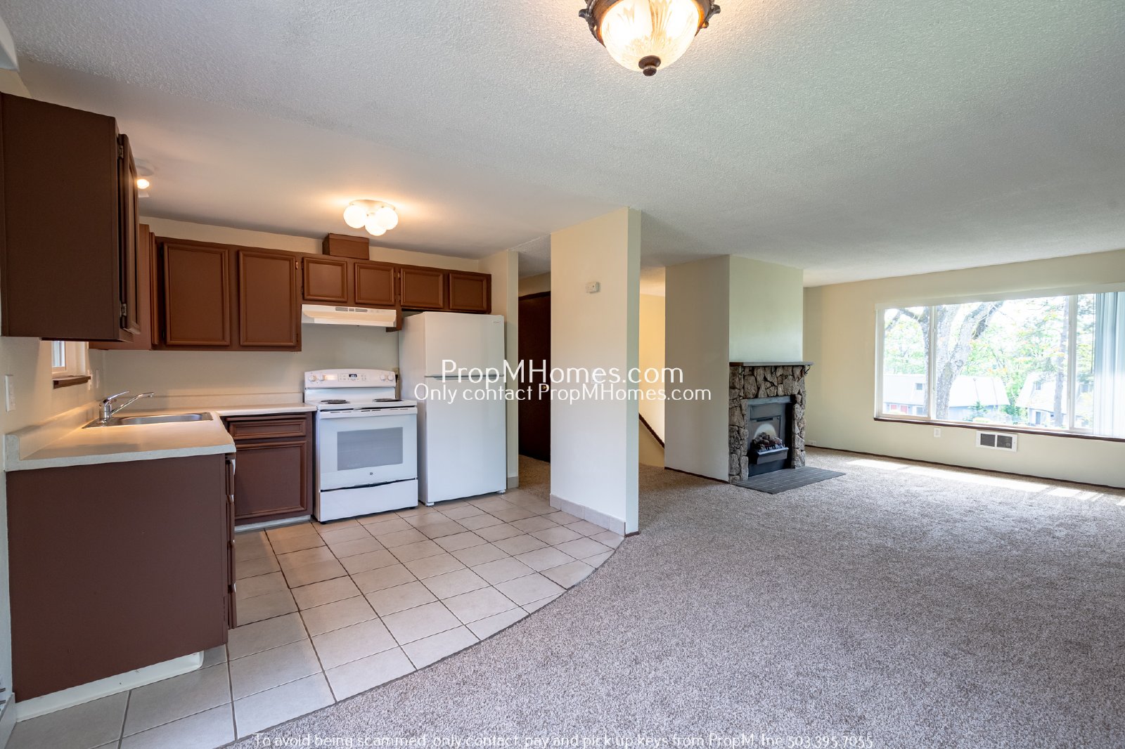 Step inside to a welcoming living space filled with natural light and cozy charm. The upper-level living room features plush carpeting, a large front-facing window, and a beautiful stone fireplace that anchors the space, creating the perfect gathering spot. Downstairs, you'll find a spacious bonus room with a second fireplace, ideal for a media room, home office, or an additional bedroom.