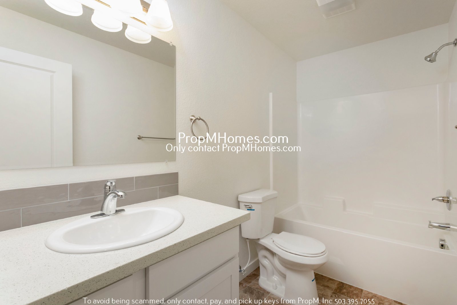 Upstairs, you’ll find a spacious primary bedroom with soft carpeting, dual closets, and large windows for lots of natural light. The en-suite bath features a full-size tub/shower combo and contemporary finishes. Three additional bedrooms offer flexibility for guests, home office, or workout space. A second full bath upstairs ensures convenience for everyone.