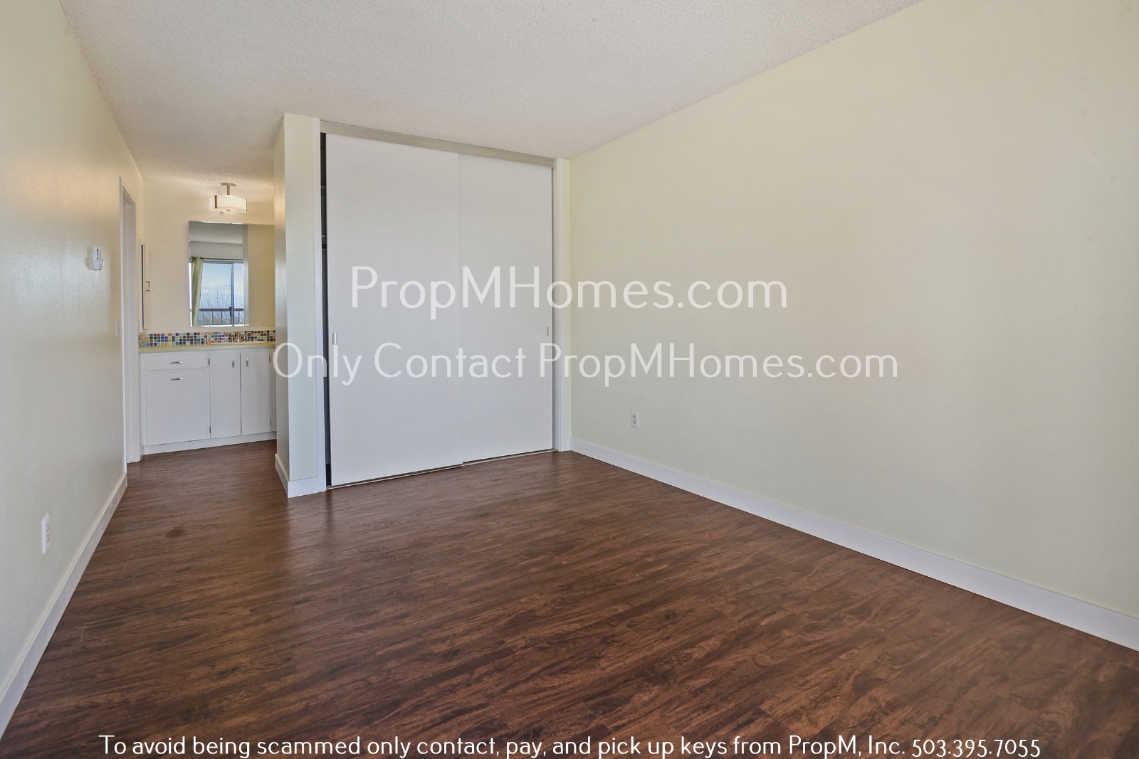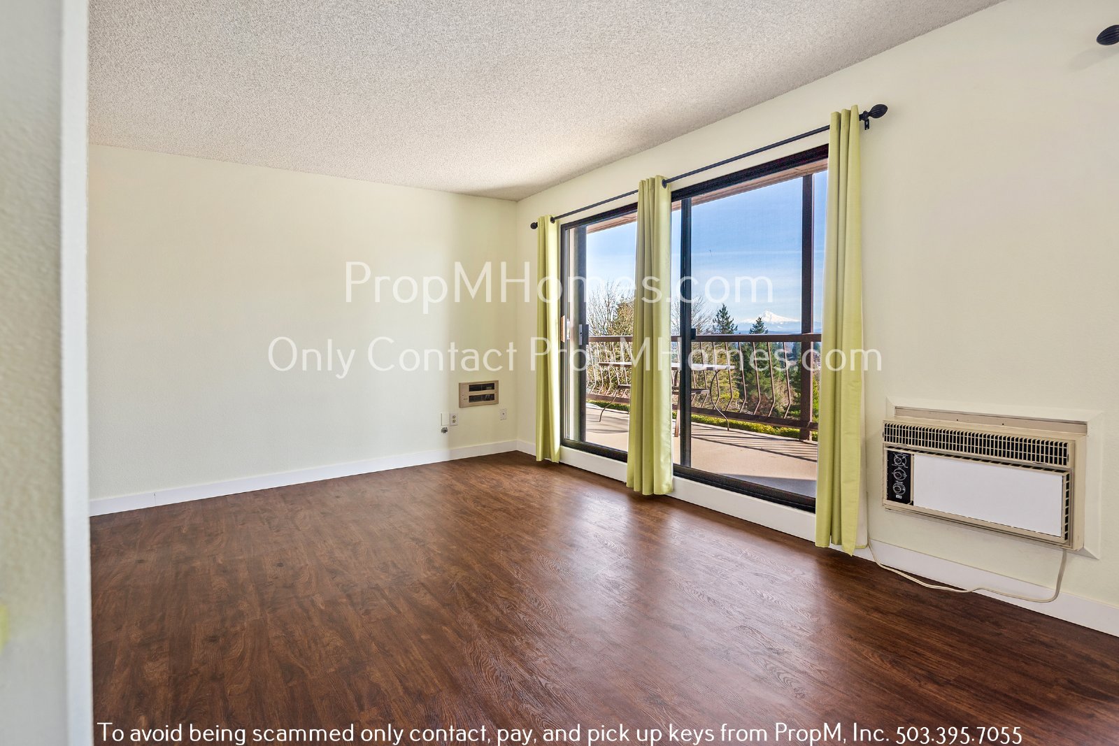 Enter a realm of peace when you come home to the stunning, wide-angle vistas of Mt. Hood and the Cascade Range. This one-bedroom condo is located in a calm and secure building and provides a tranquil living environment. Complete with laminate wood-like flooring and large windows that allow for ample natural light. This condo also features a large balcony right off the living space with a stunning view of Mt. Hood.