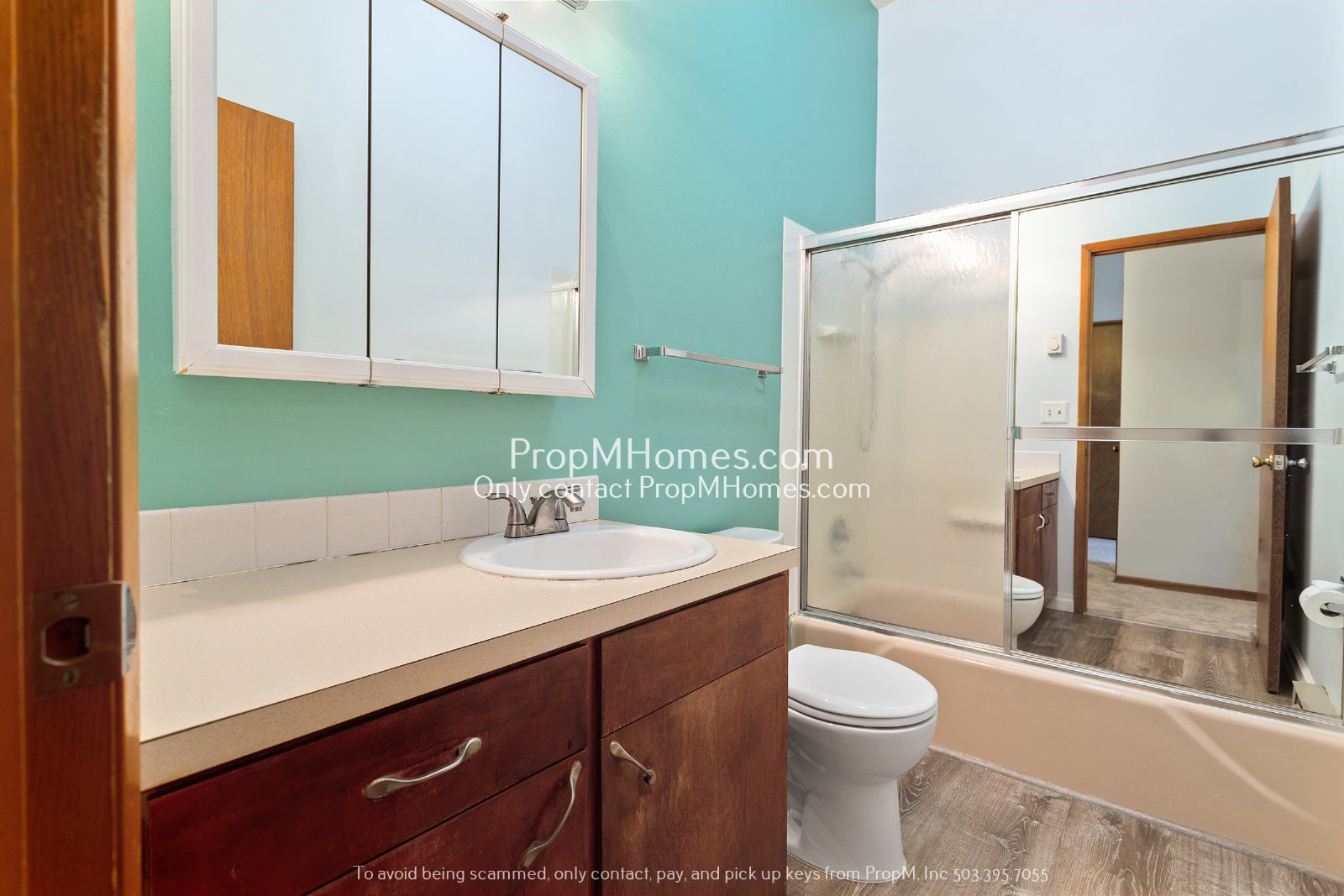 -Full bathroom includes a mirrored medicine cabinet and shower/tub combo