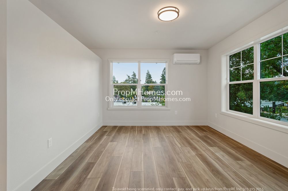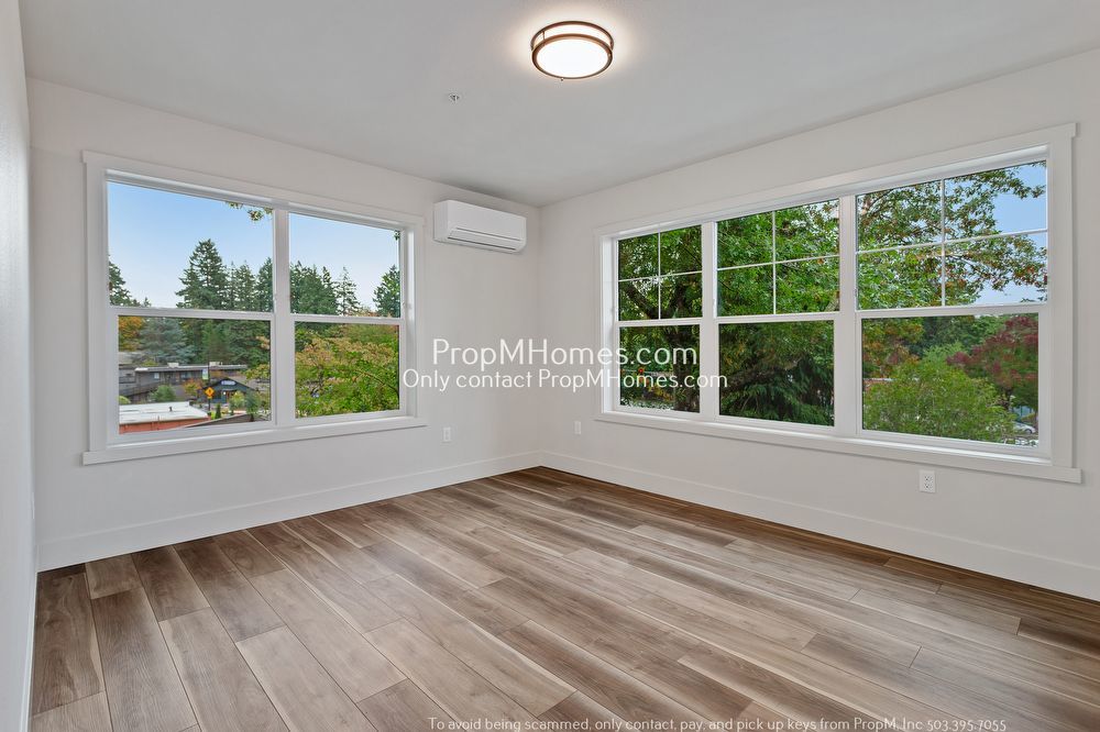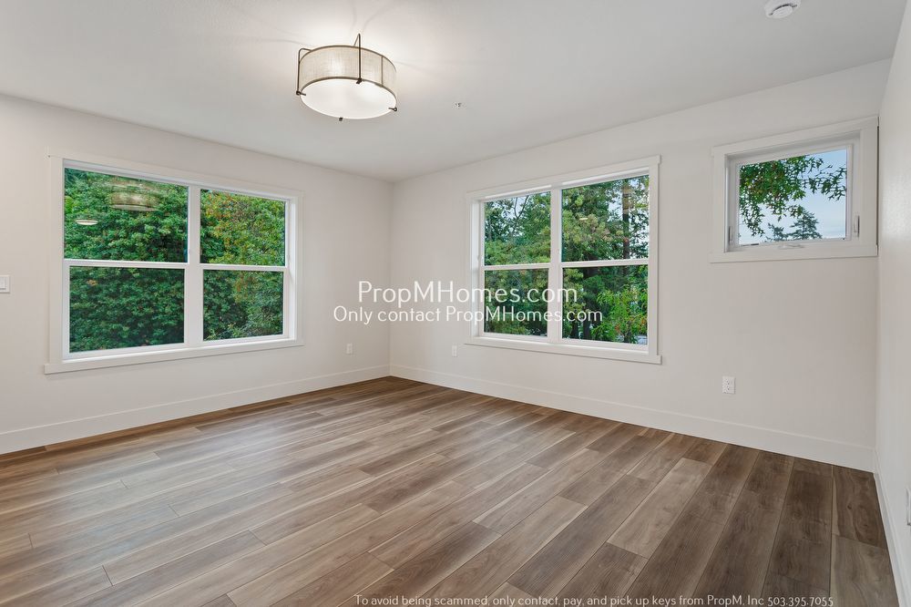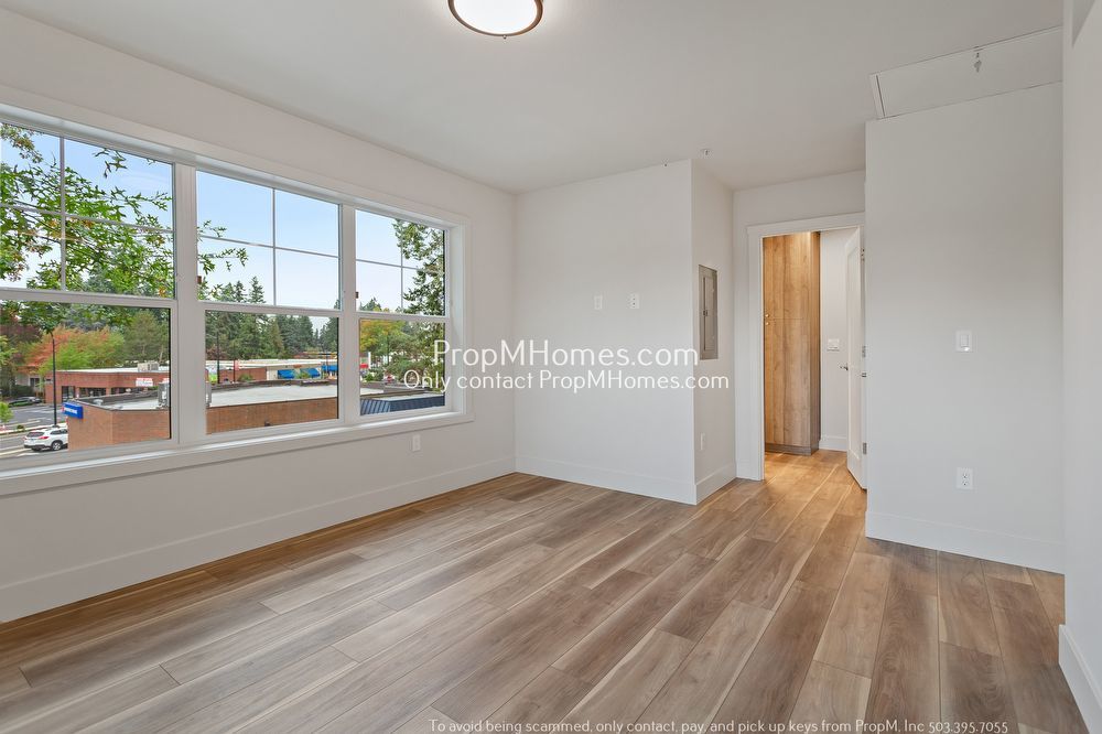 -Third-floor unit with wide plank wood-style flooring and oversized windows