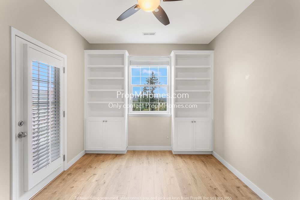 The secondary bedroom is a cozy haven, featuring built-in bookshelves and ample natural light. Whether you need a quiet reading nook or a peaceful workspace, this room delivers. The shared balcony adds an extra touch of charm.