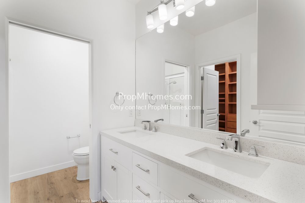 Your primary bedroom is a personal retreat, complete with a ceiling fan to keep things comfortable year-round. Enjoy direct access to a shared balcony—perfect for morning coffee or evening relaxation. The ensuite bathroom offers dual sinks, a spacious shower, and a walk-in closet with built-ins to keep you organized in style.