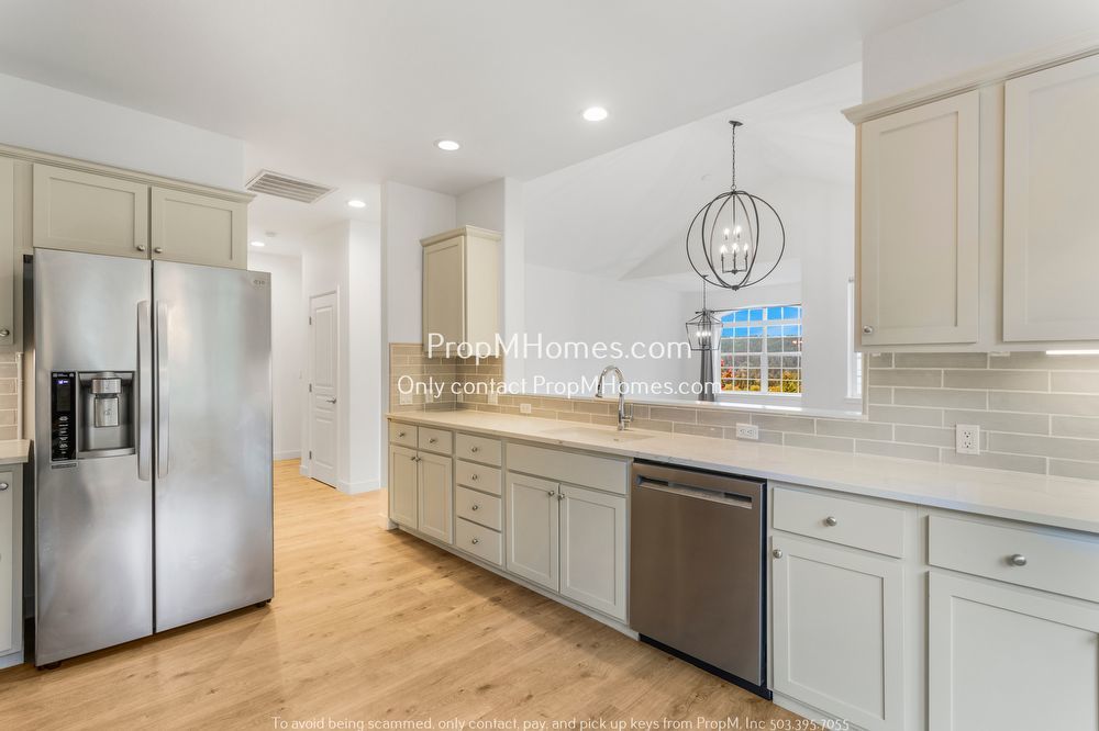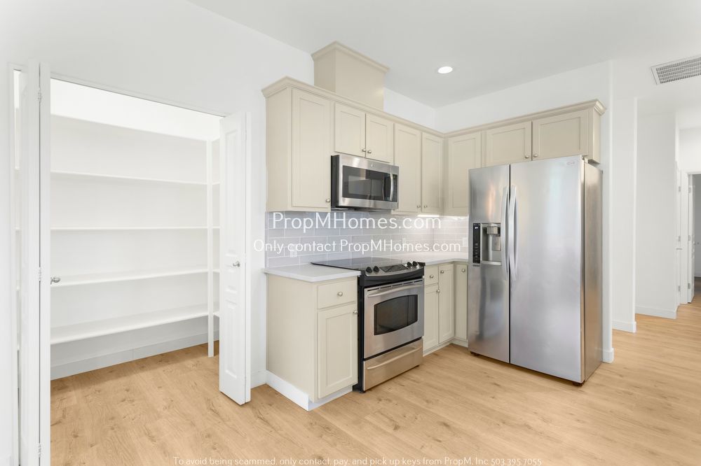 Get ready to cook up a storm in your modern kitchen, where style meets function. This culinary haven boasts top-of-the-line stainless steel appliances, including a refrigerator, microwave, dishwasher, and electric oven. The granite countertops add a touch of sophistication, complemented by sleek gray cabinetry and a chic tile backsplash. Need storage? The spacious pantry ensures everything from gourmet spices to snacks has a place.