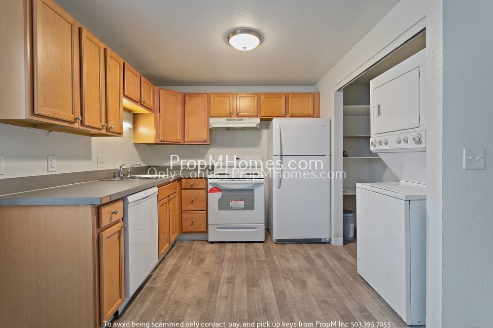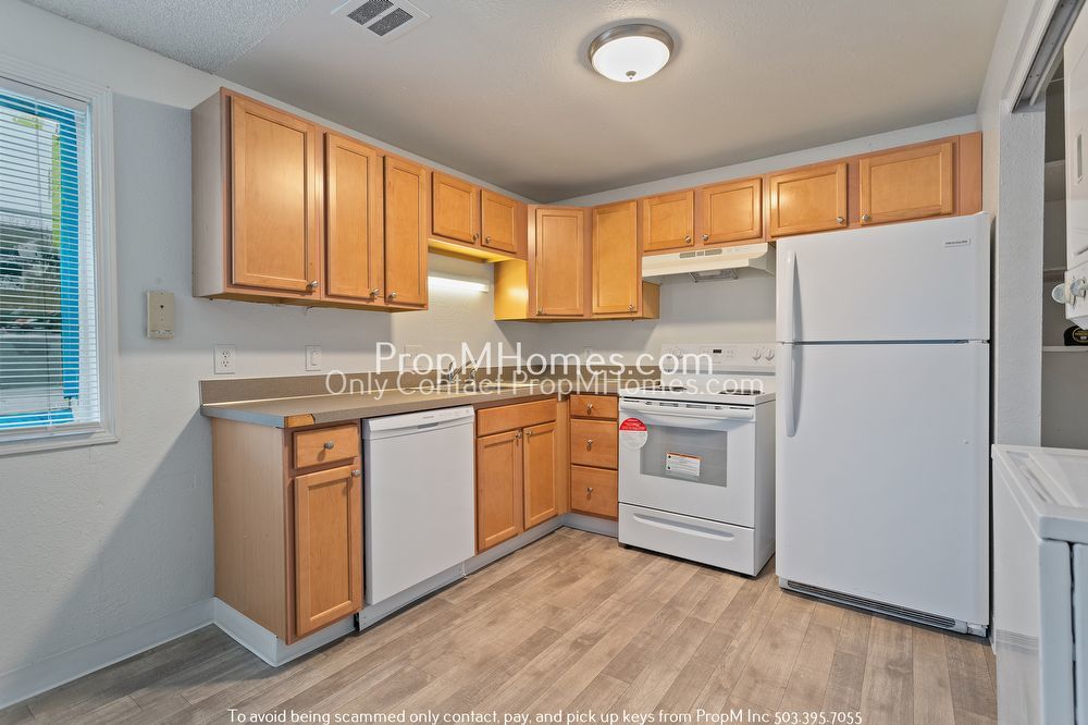 Your kitchen is equipped with everything you need to whip up a delicious dish. You will love the wood cabinetry, laminate counters, and white appliances, including a refrigerator, electric stove with oven, and dishwasher. There is also plenty of storage and counter space for your convenience.