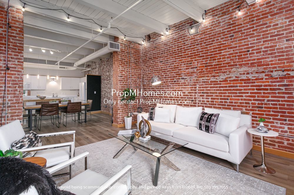 -Soaring ceilings and exposed brick walls create true industrial loft charm