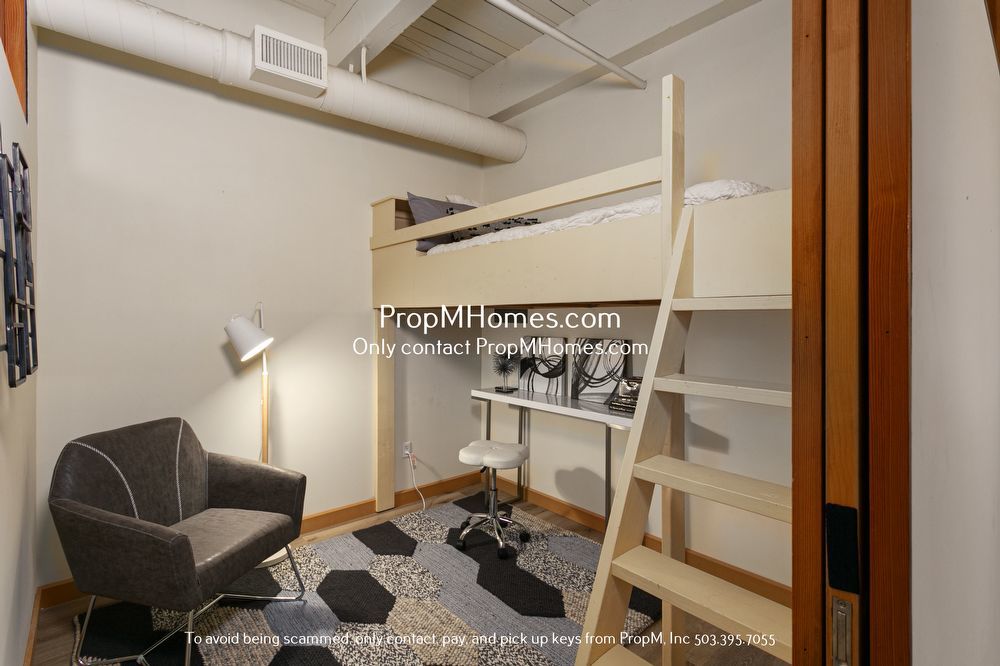 -Second enclosed room perfect for home office or guest space (bunk bed can be removed upon request)