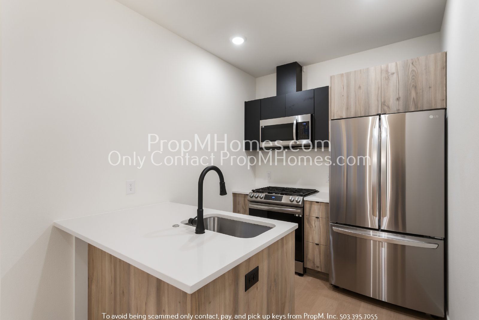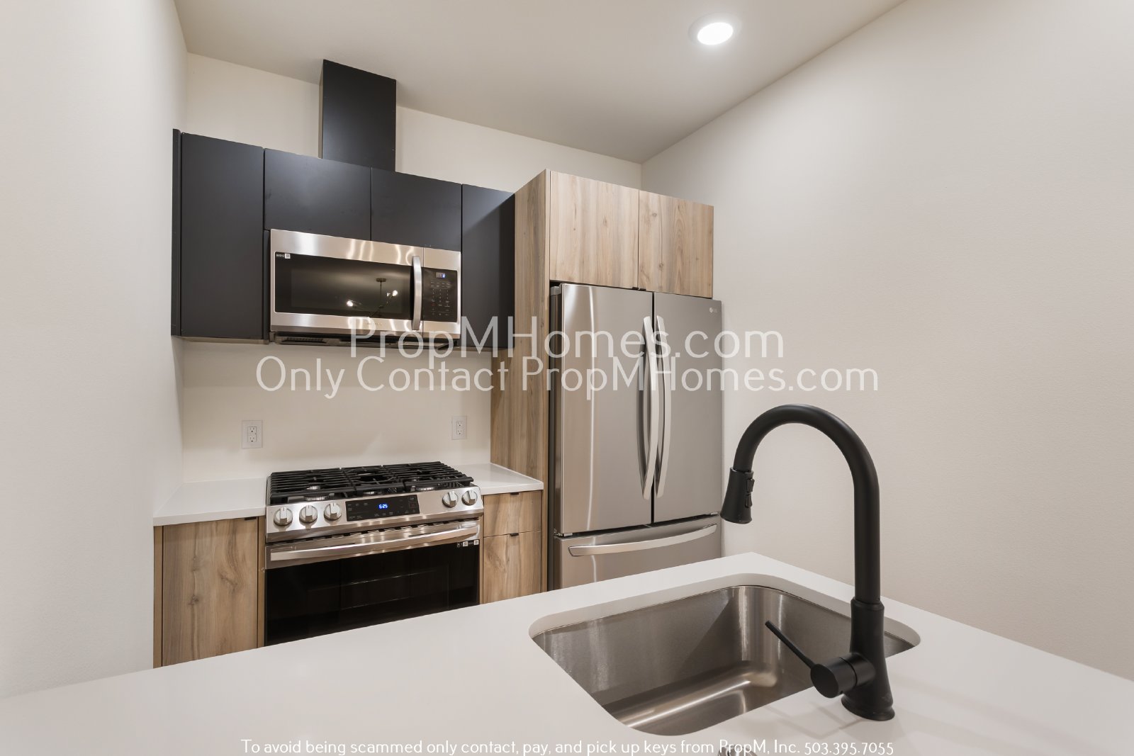 Unleash your culinary creativity in a kitchen designed for both style and practicality. Adorned with quartz counters, wooden cabinetry, and sleek stainless-steel appliances—including a refrigerator, oven, dishwasher, gas stove, and microwave—this kitchen is a haven for those who appreciate modern elegance.