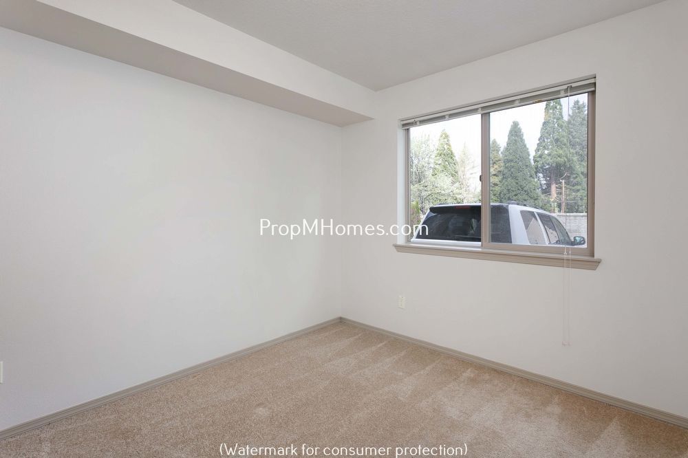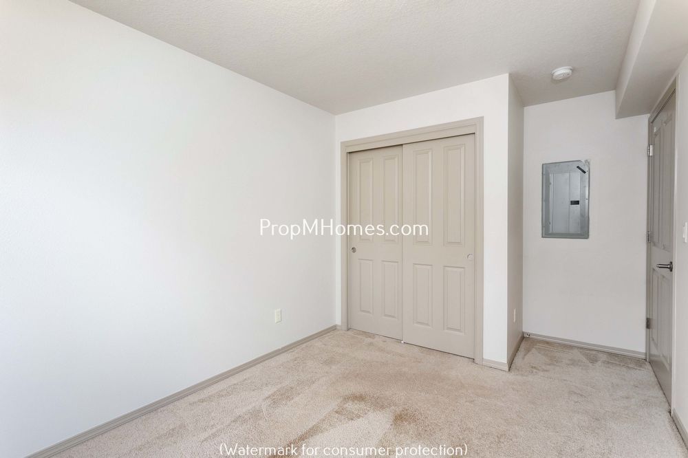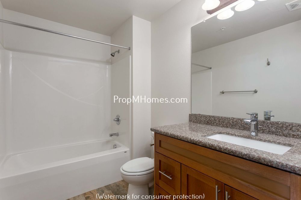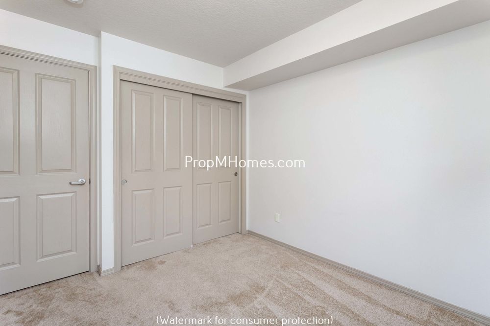 The space includes two bedrooms and one bathroom. The bedrooms feature plush carpeting and generous closet space, offering a comfortable and practical living area. The bathroom is equipped with a sink vanity and a shower/tub combination, with an additional sink available, enhancing convenience and functionality.
