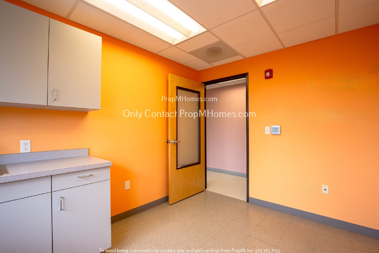 Introducing Office E, the perfect space to elevate your business. Featuring bright orange walls that infuse energy and creativity into your work environment, this office also boasts a large window for abundant natural light. Enjoy the convenience of built-in cabinets for ample storage and a sink for added functionality. Located in a professional setting designed to enhance productivity and comfort, Office E offers everything you need to transform your work experience. Step into this vibrant space and take your business to the next level today!