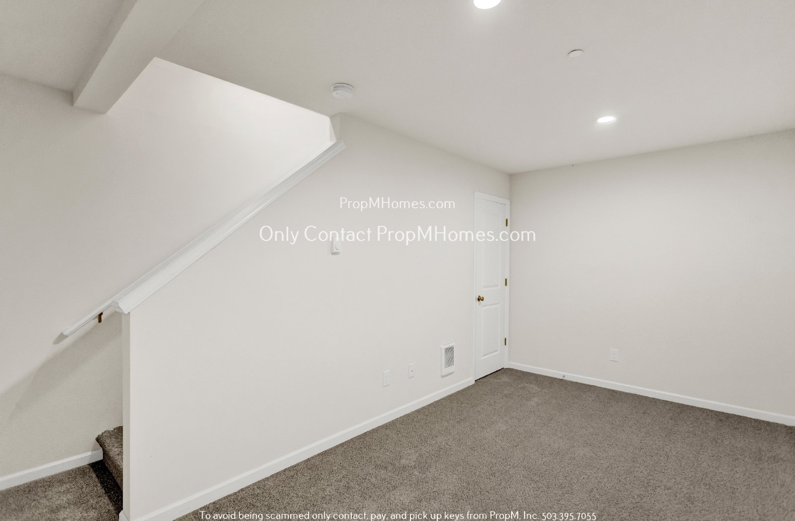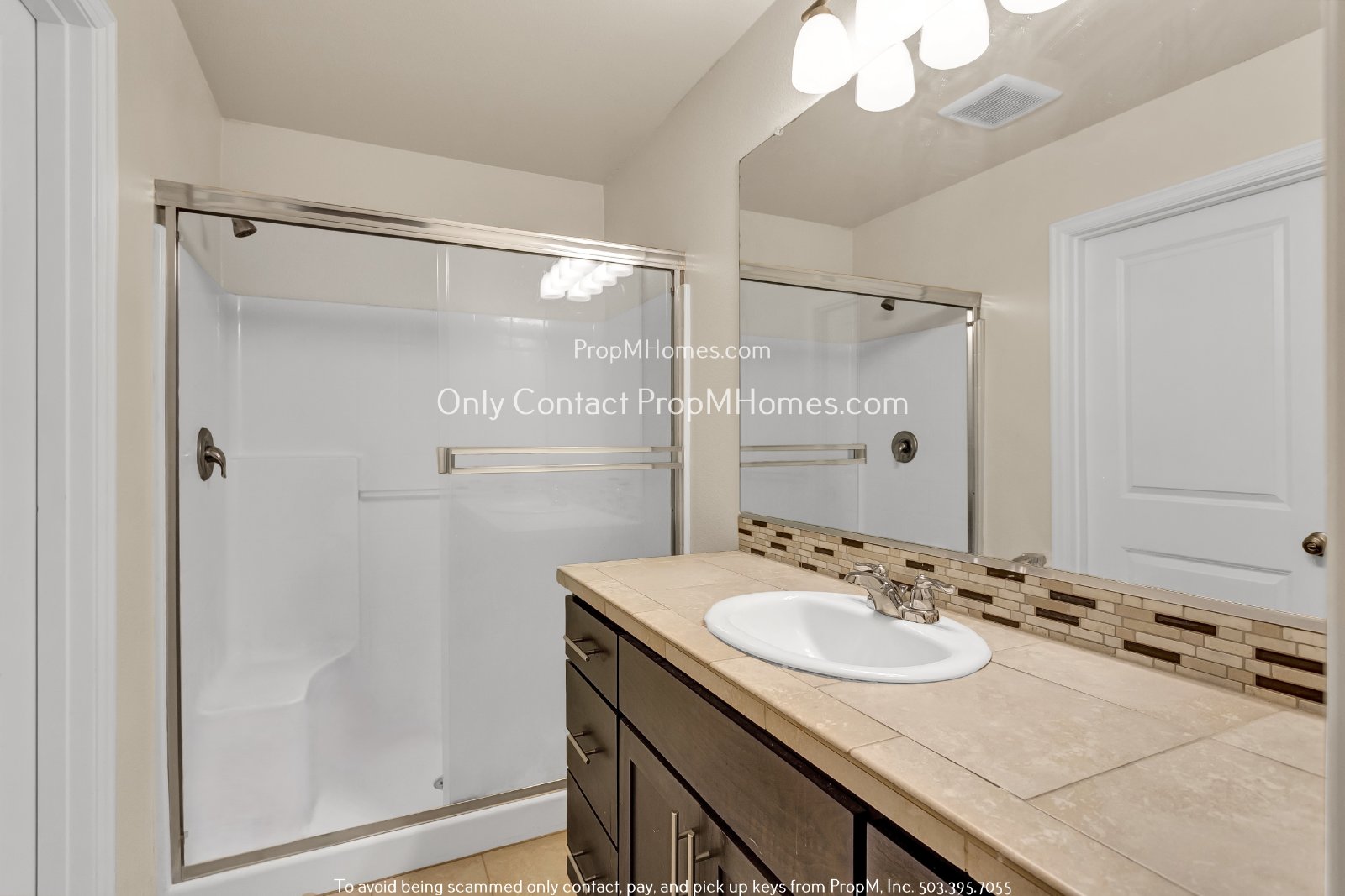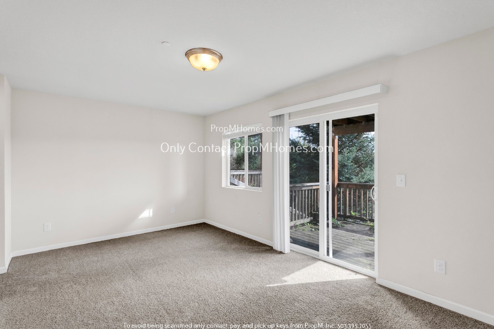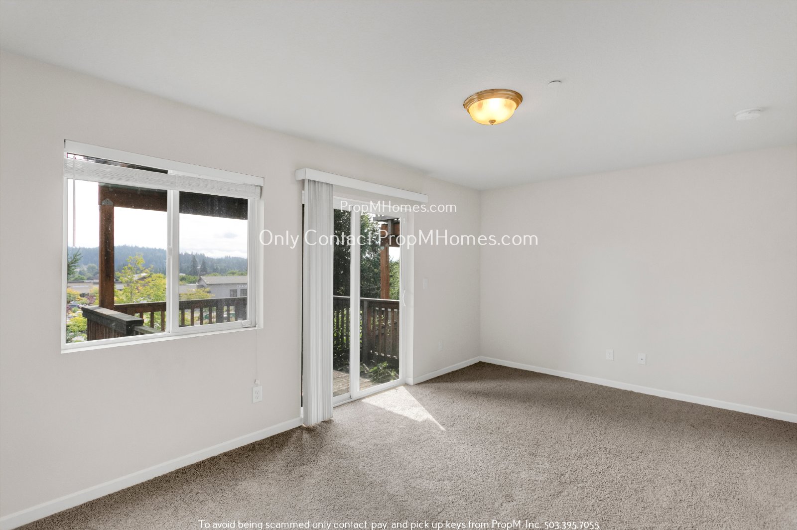 The home features spacious bedrooms, each offering plush carpeting and large windows to let in the soft Oregon light. The primary suite is a retreat in itself, complete with a generous walk-in closet and an en-suite bathroom featuring a refreshing walk-in shower. The lower level includes a private bedroom with its own bathroom and balcony—perfect for guests or a quiet home office.