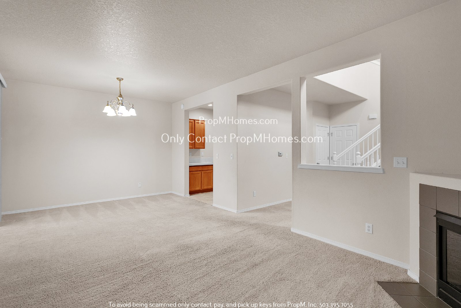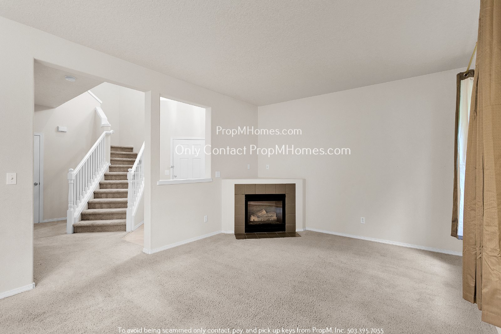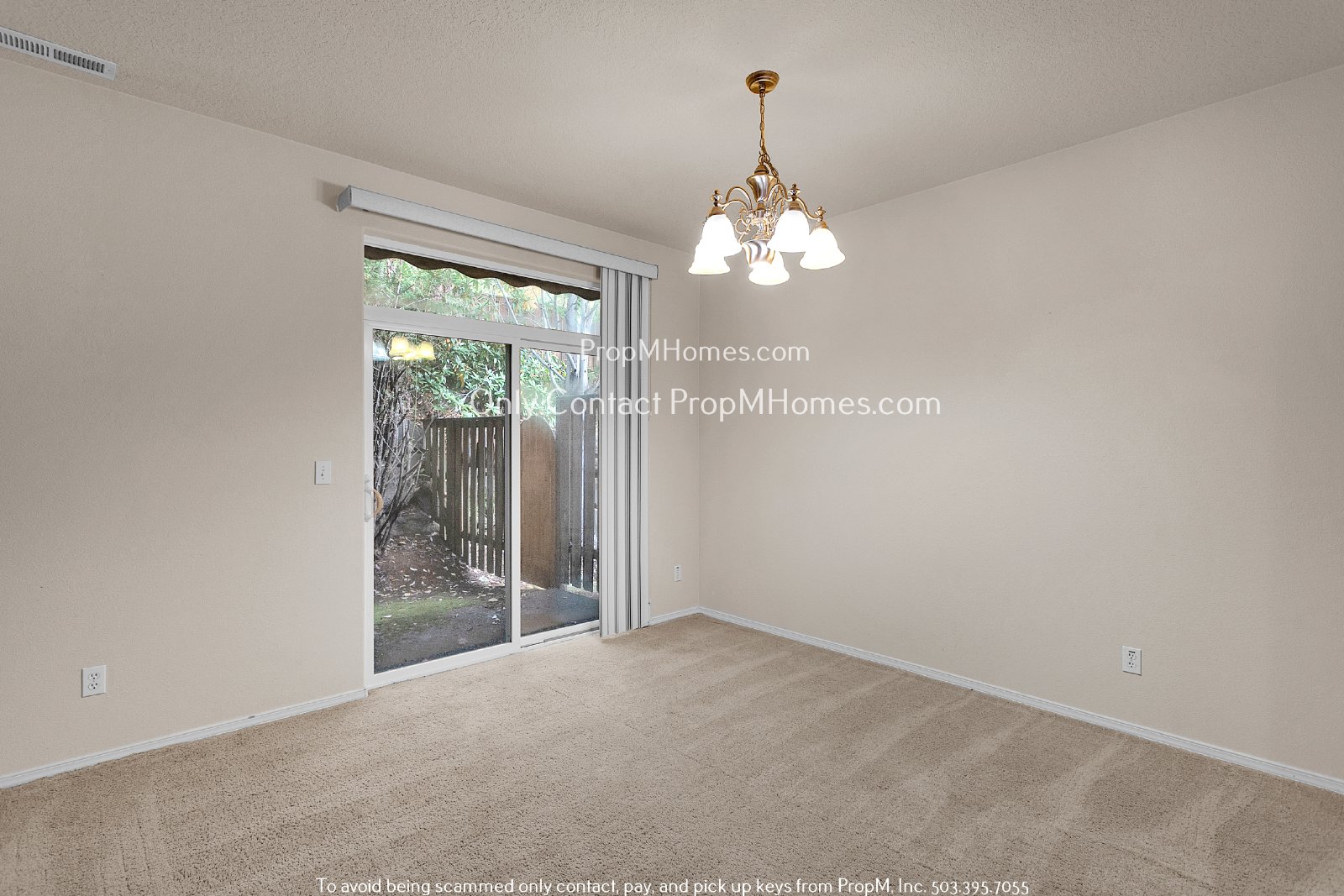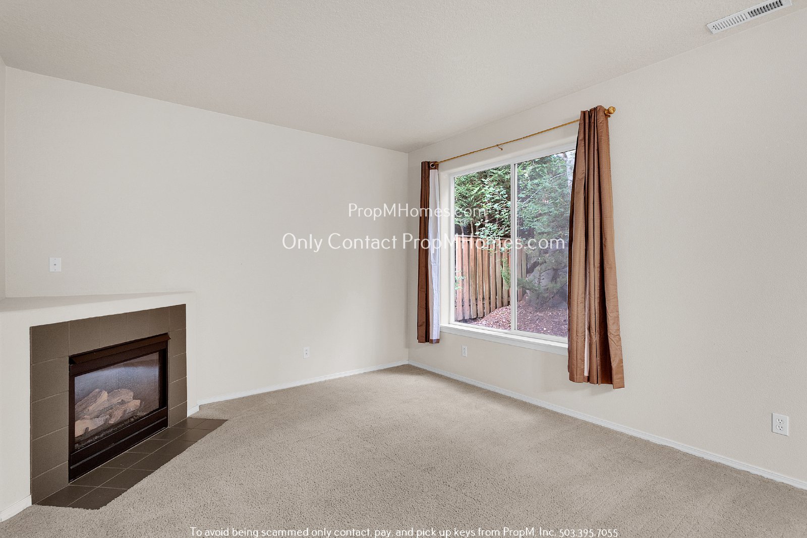 Step into a cozy yet spacious living room where comfort meets style. With a charming gas fireplace, plush carpeting, and a convenient slider opening up to the patio, this room invites relaxation. Overhead lighting brightens the space, providing the perfect ambiance for unwinding or entertaining guests.