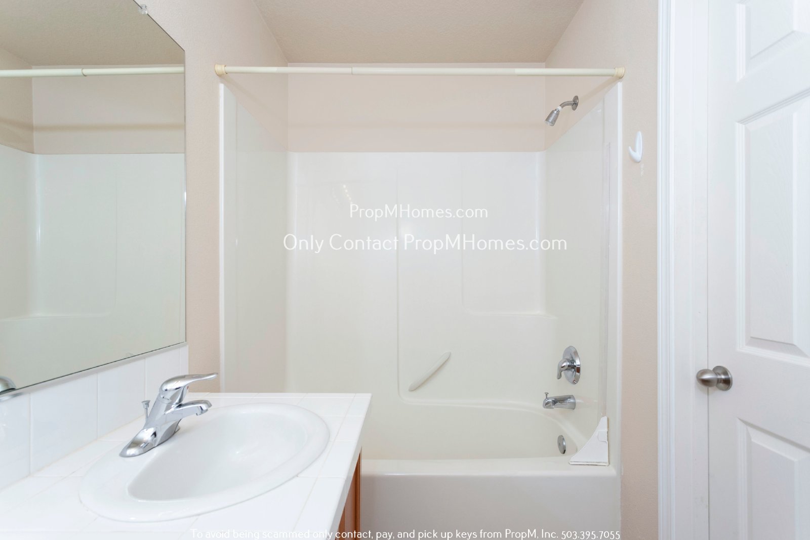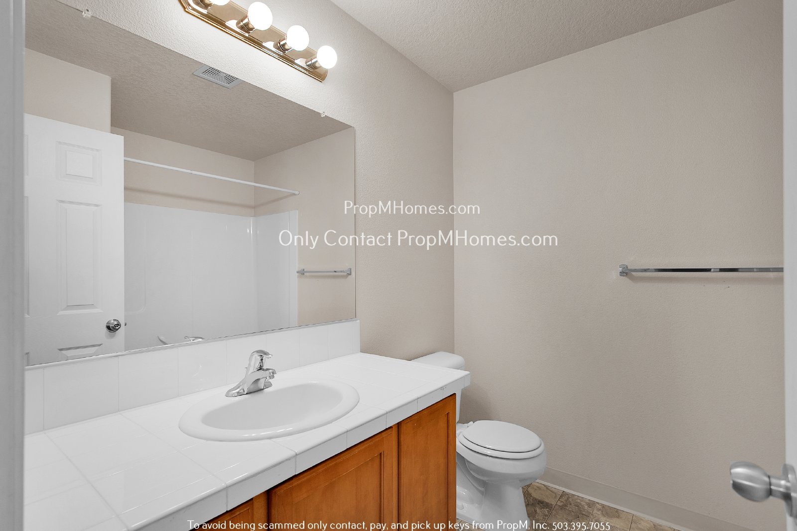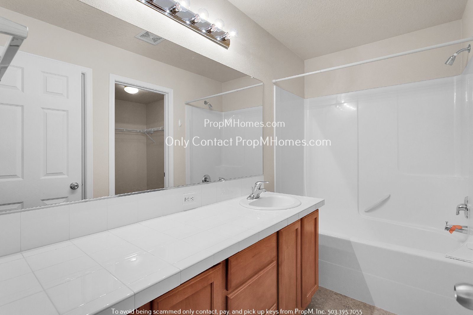 This home offers three well-appointed bedrooms and two and a half bathrooms. The primary suite is a serene escape, while the additional bedrooms provide ample space with wide windows, carpeted floors, generous closets, and overhead lighting. The additional bathroom includes a shower/tub combo and tasteful tile counters, ideal for busy mornings or a relaxing soak.