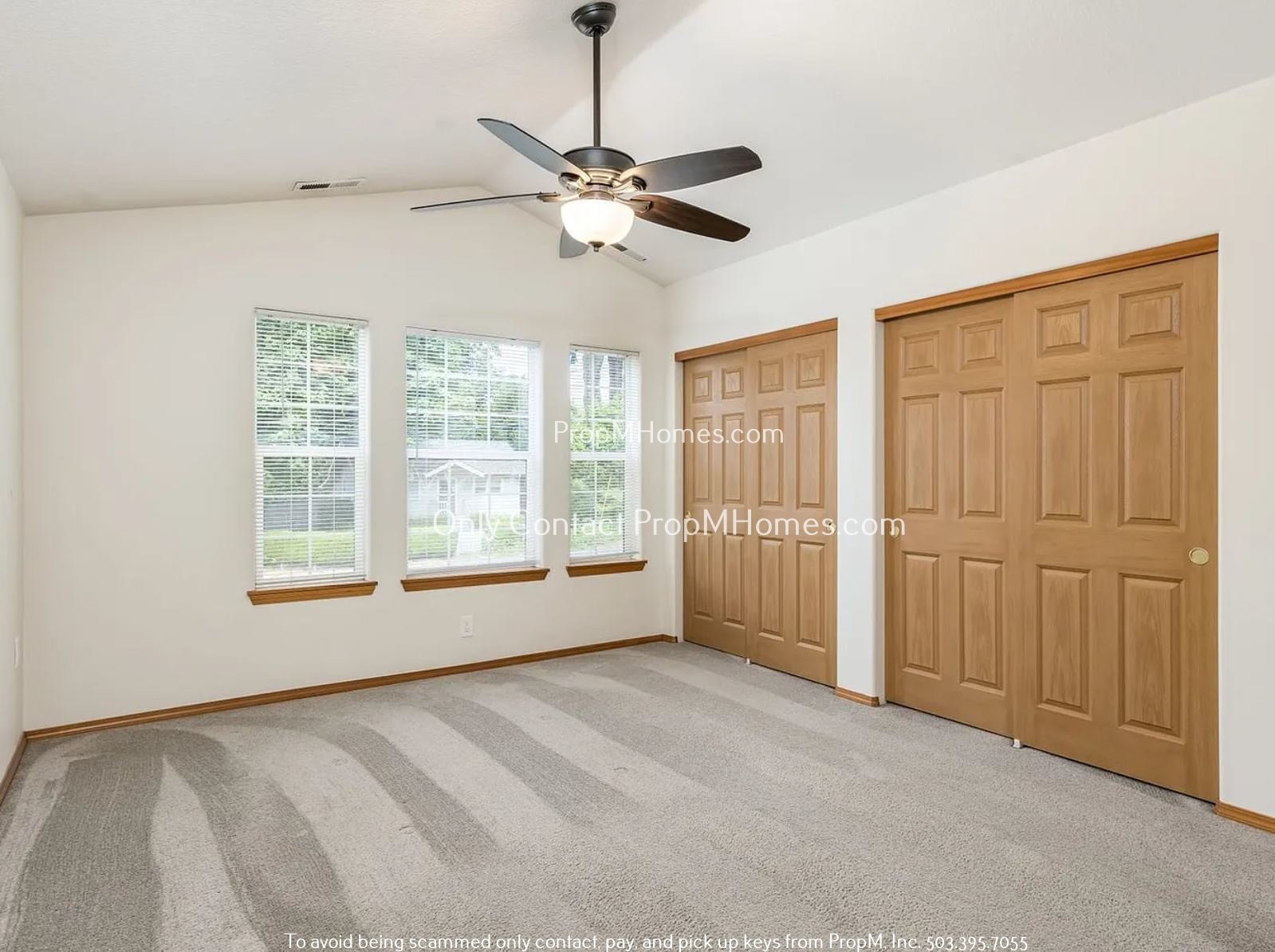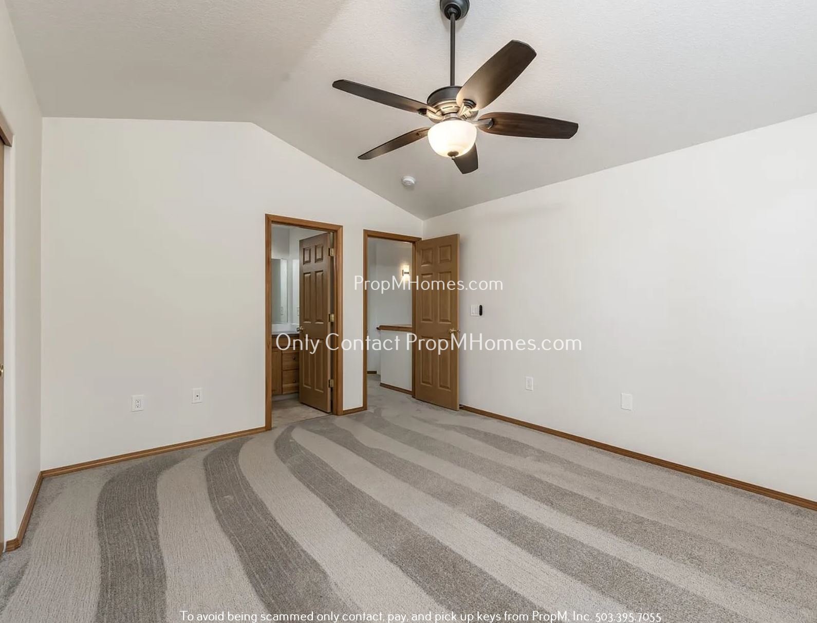 This home boasts a thoughtful layout with three comfortable bedrooms and two and a half well-appointed bathrooms. The primary suite serves as a tranquil retreat, featuring vaulted ceilings that create an airy atmosphere, a walk-in closet for ample storage, and a private en-suite bathroom complete with a combination shower/tub and spacious vanity. Two additional bedrooms offer cozy spaces flooded with natural light, each equipped with standard closets to keep belongings tidy. For added convenience, a full bathroom with a combination shower/tub and generous vanity is shared by the secondary bedrooms, while a powder room on the main level caters to guests and daily needs. This configuration ensures privacy and functionality for all occupants and visitors alike.