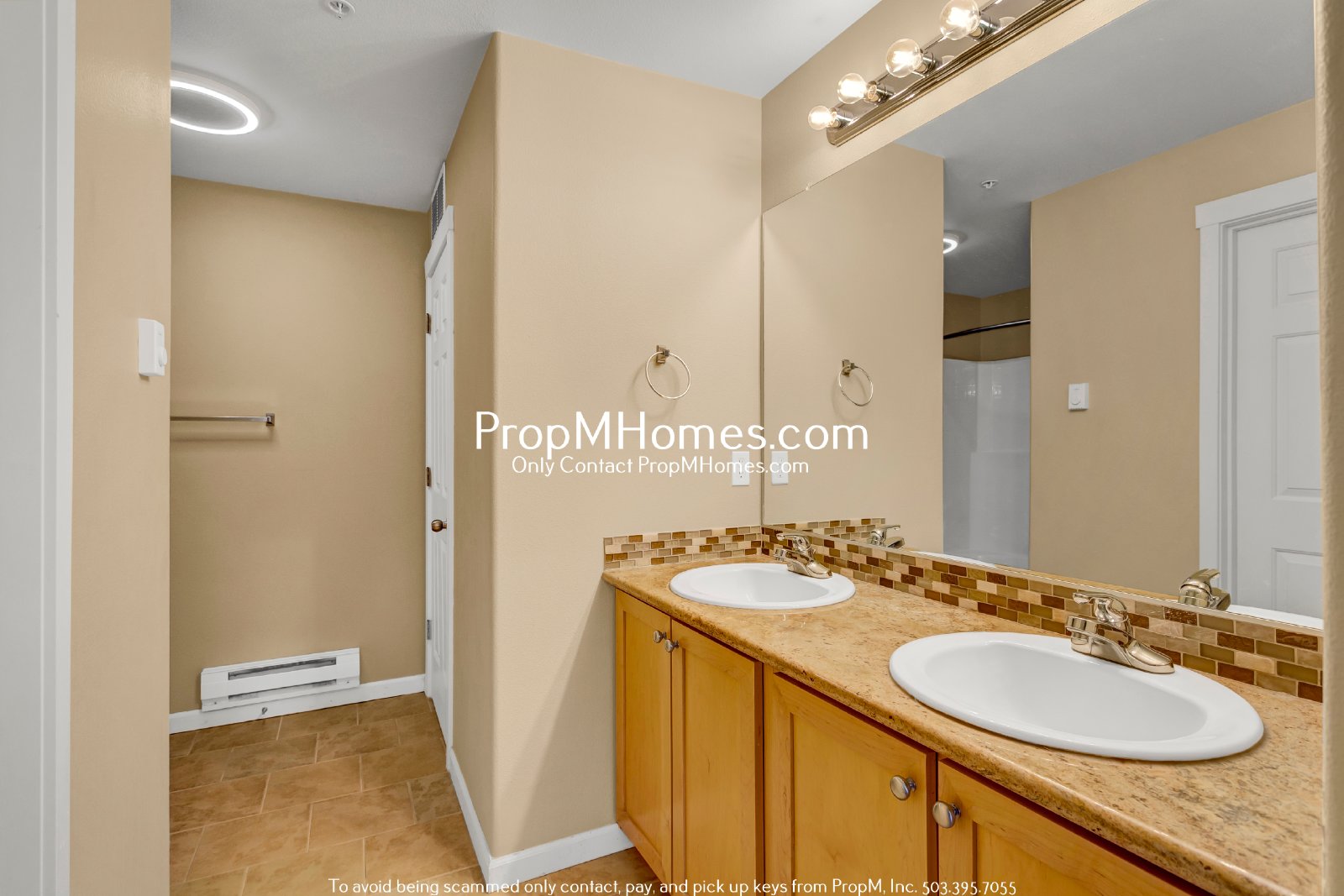 Unwind in your cozy bedroom, complete with a window, carpet flooring, plenty of closet space, and an attached bathroom with dual vanity sinks and a oversized shower/tub combo. Down the hall you have a second bedroom with carpet floors, closet space, and a window to go along with your second bathroom that features a shower/tub and ample storage space.