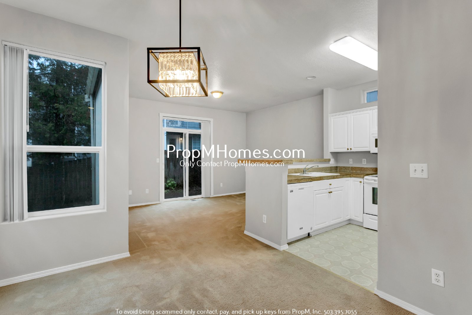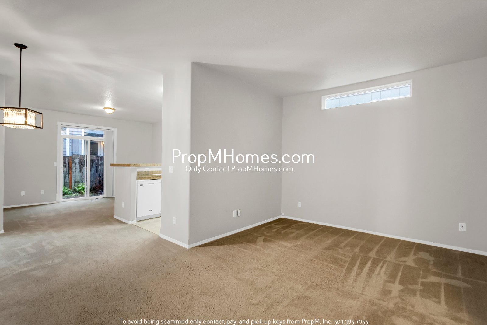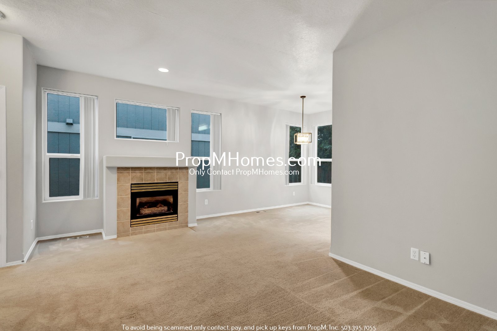 Step into a light-filled, open-concept living space with neutral tones and a cozy gas fireplace—perfect for those chilly Oregon evenings. Multiple windows bring in ample natural light, while the layout provides plenty of room for relaxation, gatherings, or a quiet evening curled up with a book.