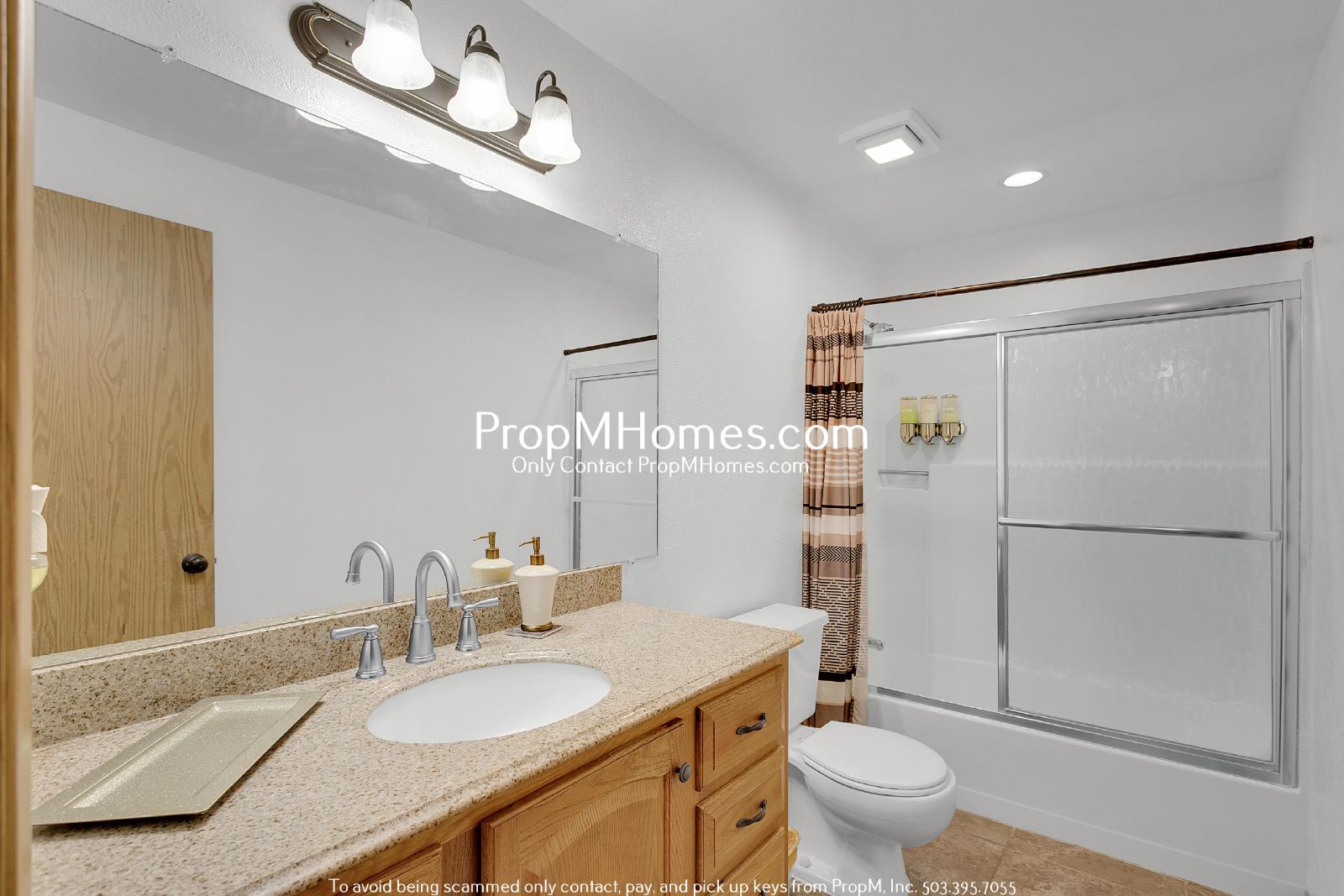 Retreat to one of the spacious bedrooms, each designed with comfort and style in mind. Large closets provide ample storage, while oversized windows fill the rooms with natural light. The primary bedroom features a generous walk-in closet, offering the perfect blend of practicality and luxury. The bathroom is updated with sleek finishes, including a spacious vanity with plenty of counter space, a modern light fixture, and a tub/shower combo enclosed with glass sliding doors.