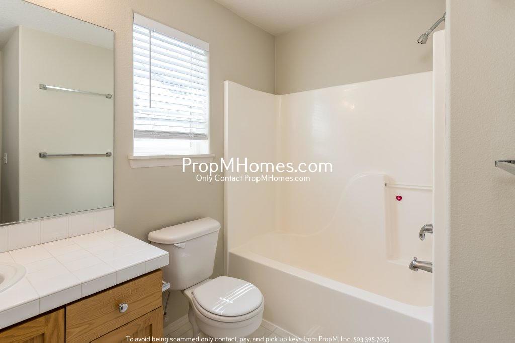 Retreat to your spacious primary bedroom featuring plush carpeting, an en-suite bathroom with dual sinks, and a walk-in closet. Additional bedrooms offer plenty of space, perfect for a home office, guest room, or personal retreat. The additional bathroom is bright and modern, with sleek fixtures, ample storage, and a full-size tub/shower combo.
