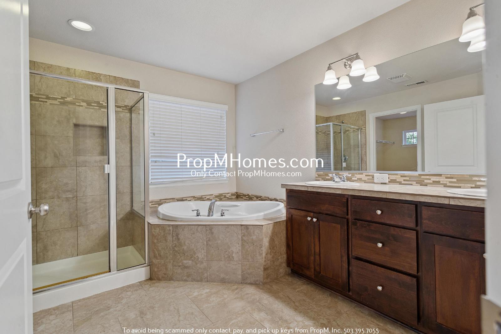 -Spacious primary suite with walk-in closet, soaking tub, walk-in shower, and dual vanities