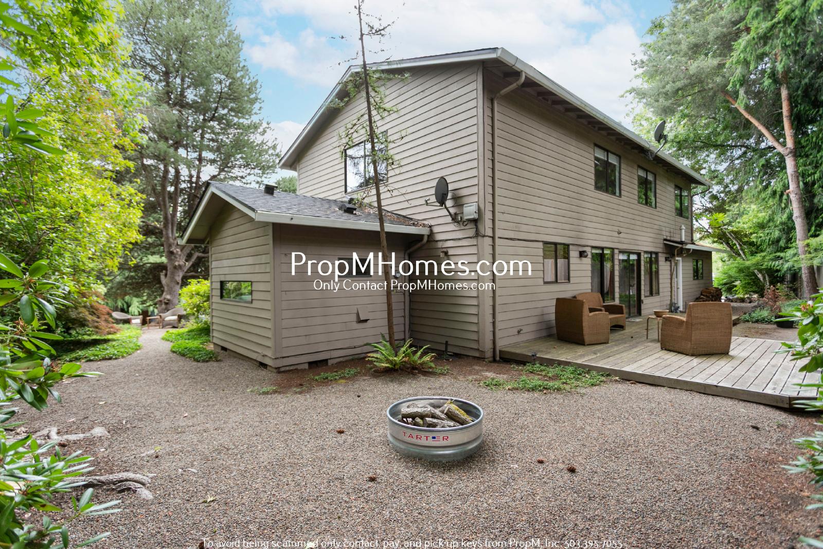 -Wood deck, fire pit area, and mature landscaping for a serene outdoor retreat