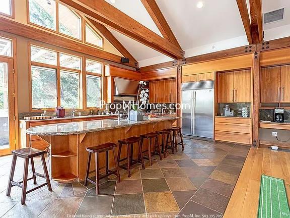 -Gourmet Kitchen: Fully equipped with range/oven, microwave, refrigerator, freezer, dishwasher, garbage disposal, and trash compactor