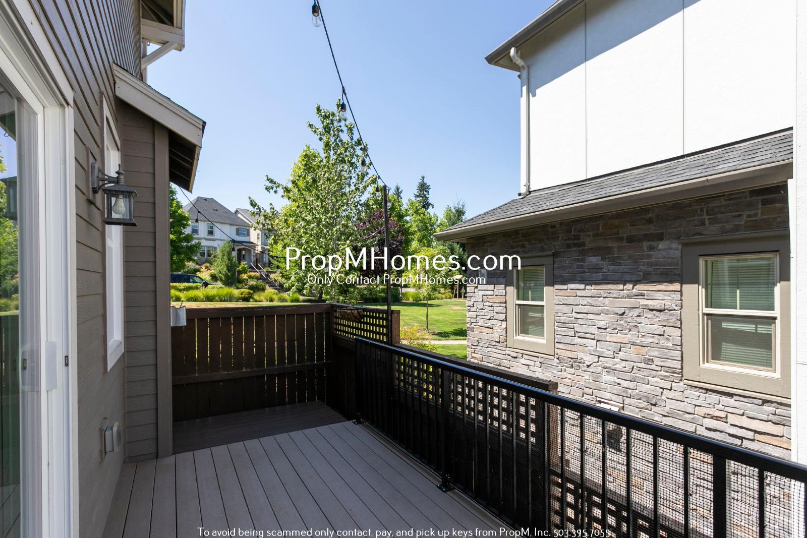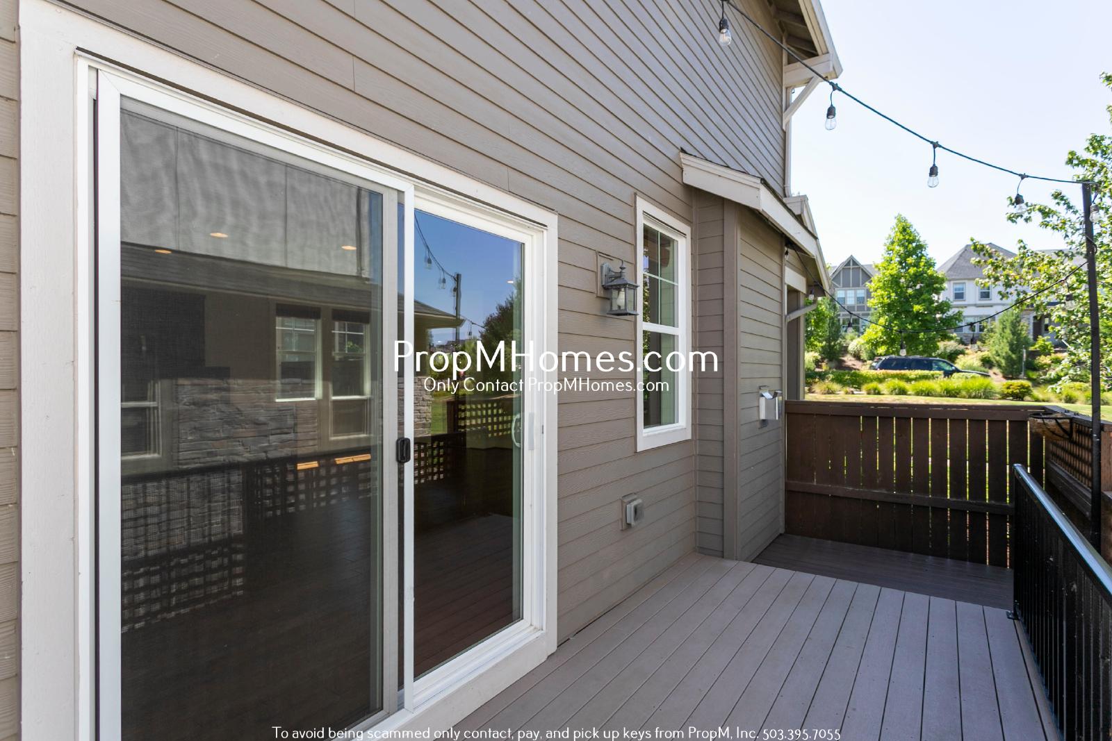 -Private back deck with string lights—perfect for entertaining or relaxing outdoors