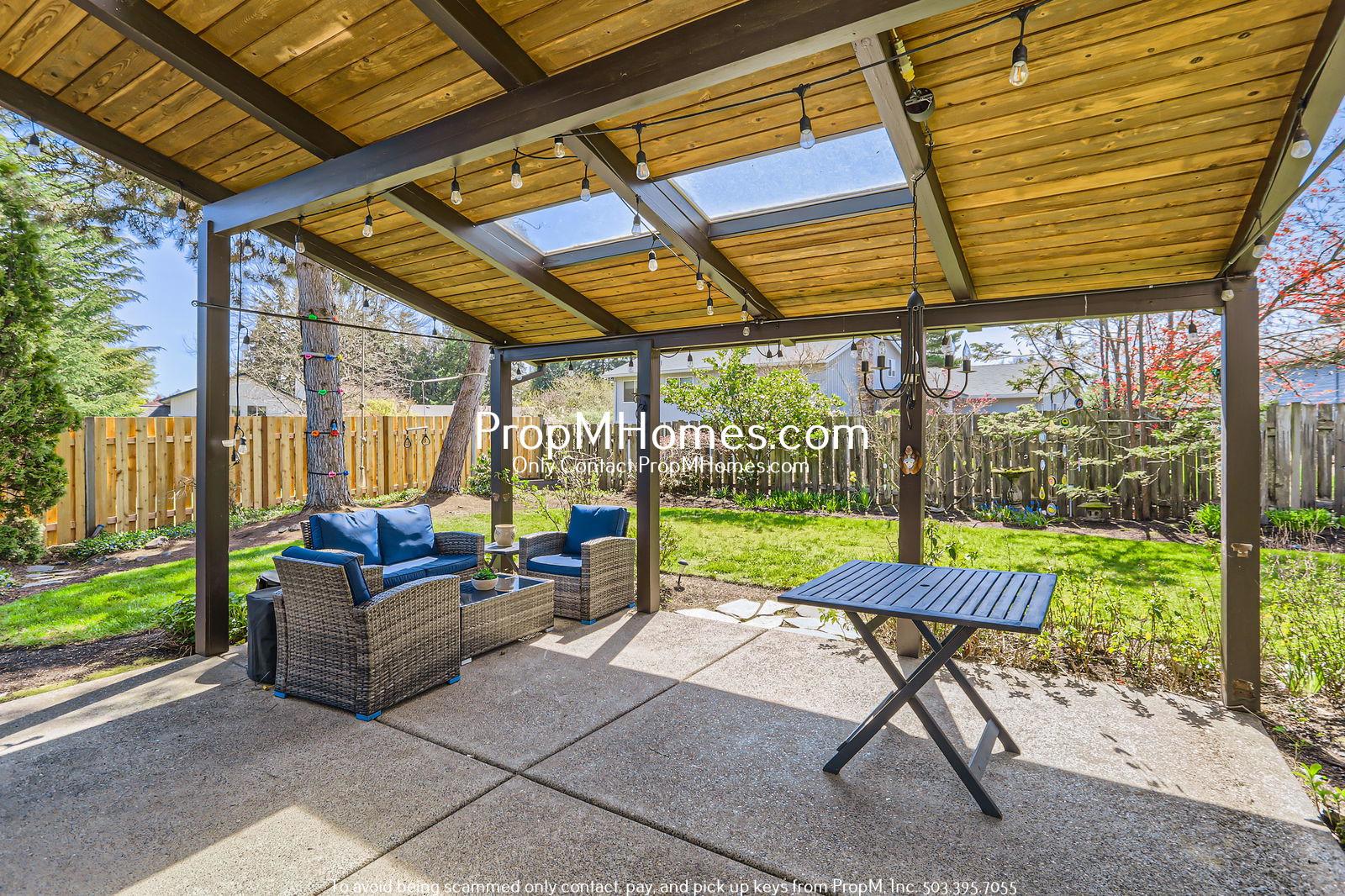 -Fully fenced backyard with a large covered patio, ideal for lounging or hosting