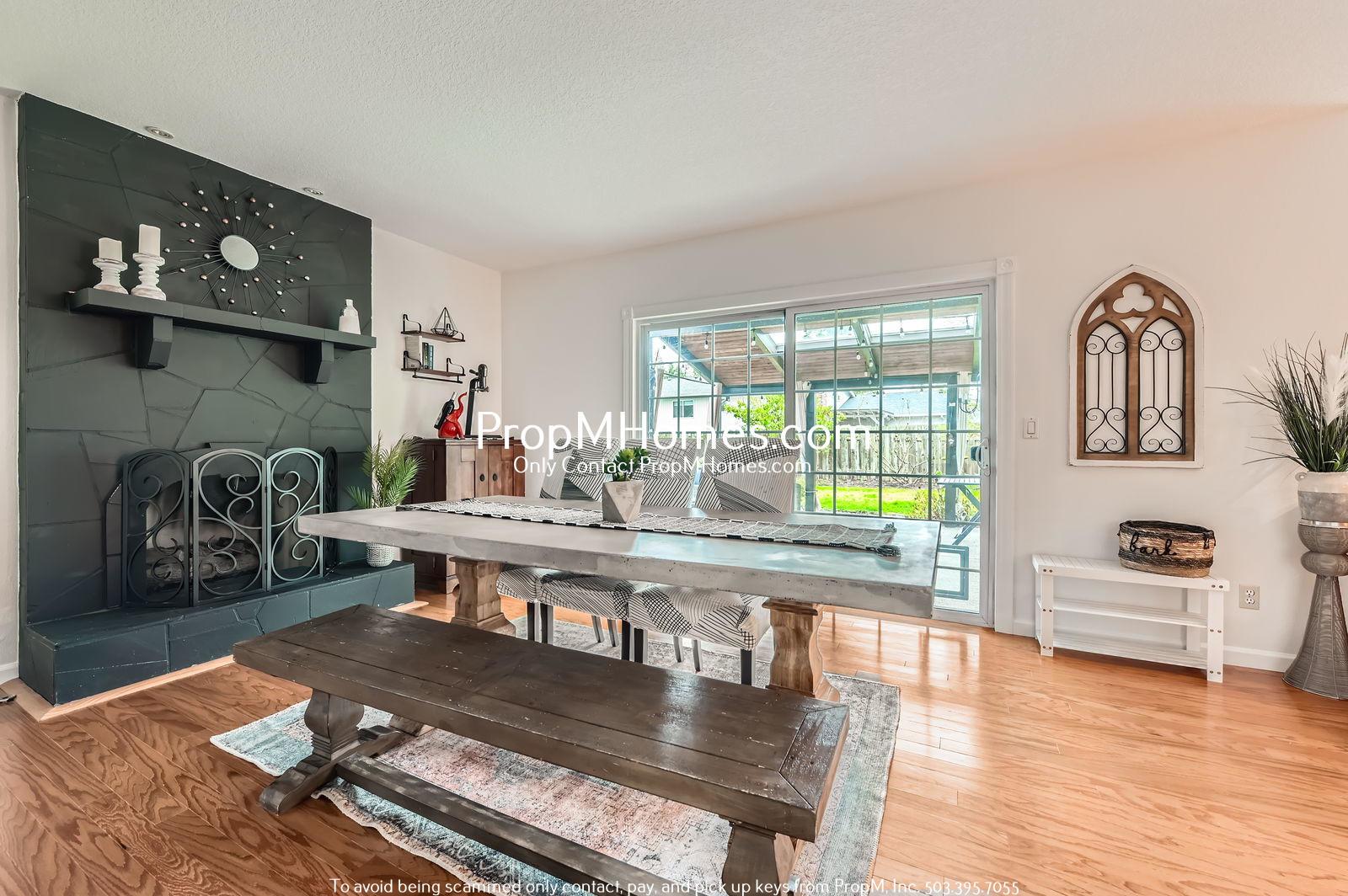 -Secondary living space with statement fireplace and direct backyard access—perfect for entertaining
