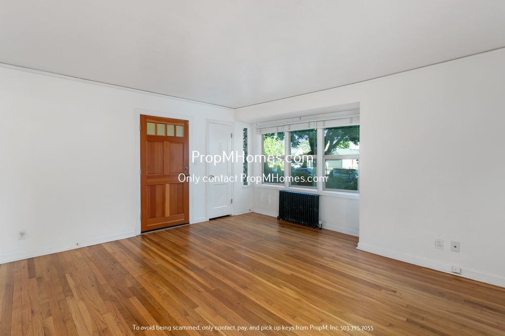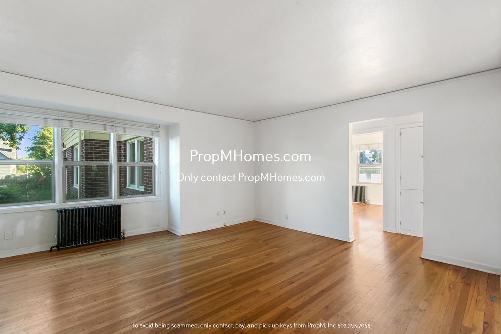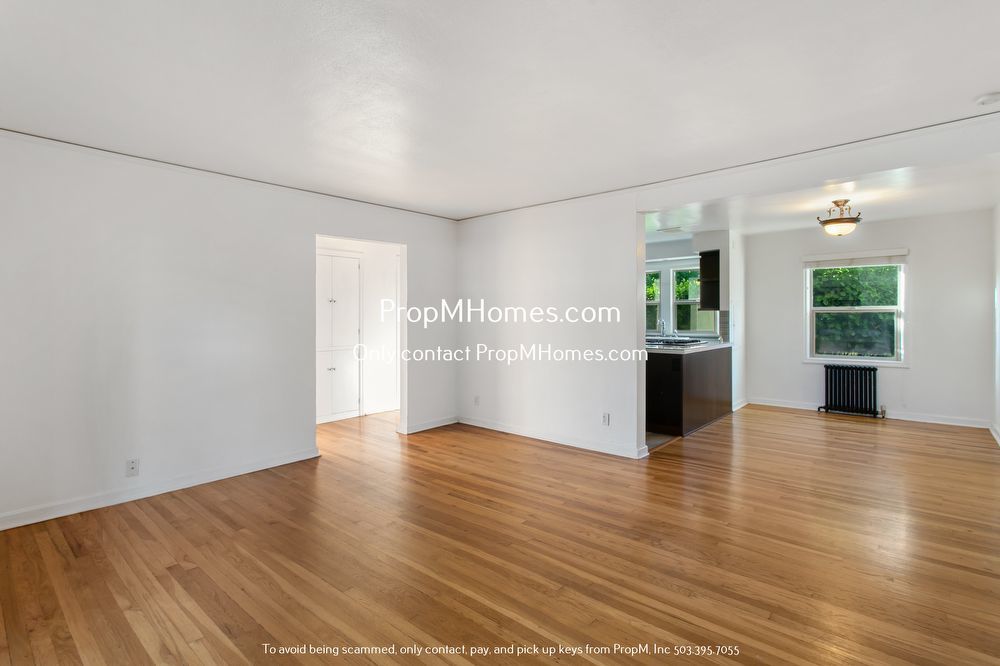 -Bright, open living space with hardwood floors and large windows