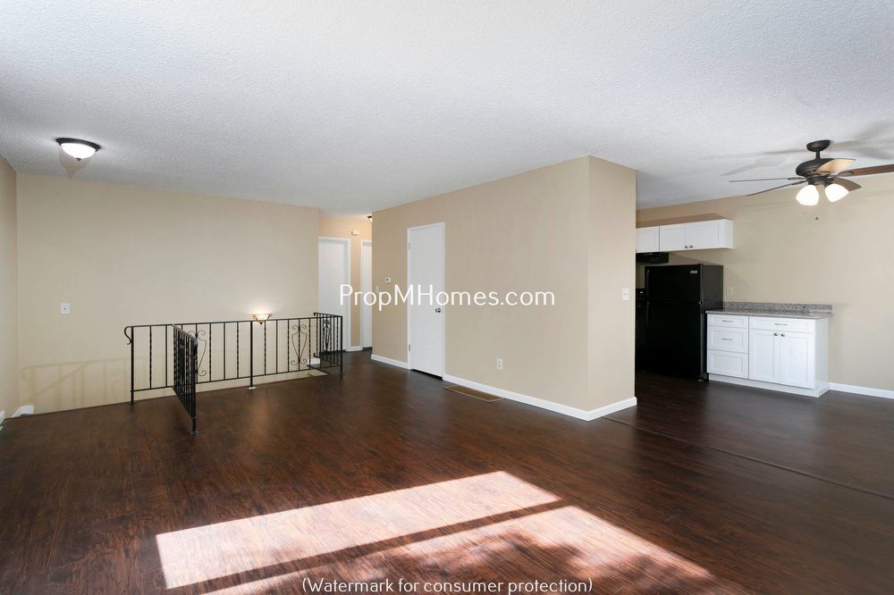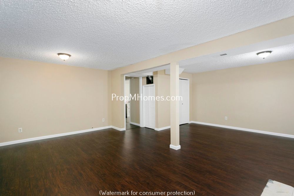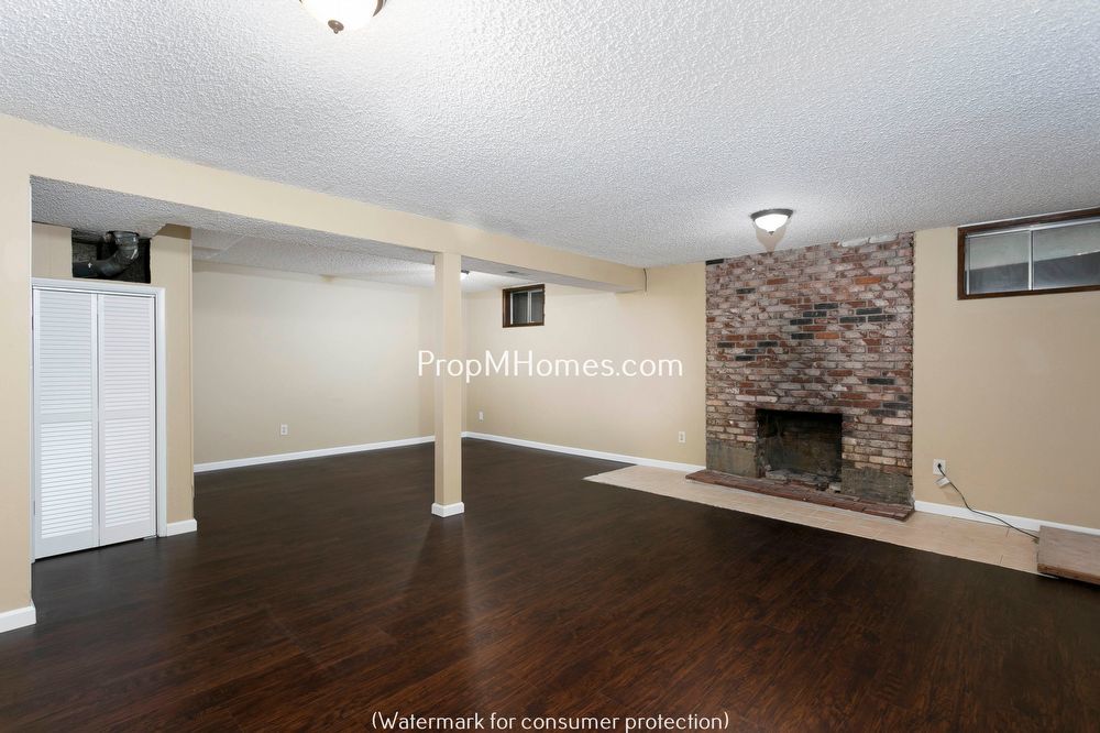 Step into a bright and inviting living room with large windows that bring in tons of natural light. The beautiful wood-style flooring throughout adds a modern, clean feel. Cozy up by the classic brick fireplace on cooler nights or gather with friends and family in this open, welcoming space. A spacious basement bonus room with a fire place gives you extra flexibility for a den, office, or additional storage.