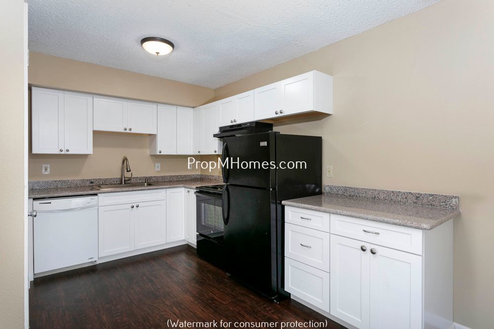 The kitchen offers a crisp, clean look with white cabinetry, laminate countertops, and a full suite of appliances in sleek black and white finishes. There’s ample cabinet and counter space to make cooking and meal prep a breeze. Whether you're a casual cook or a weekday meal planner, this kitchen is ready to support your routine. Your appliances include a refrigerator/freezer, electric stove/oven, and a dishwasher.