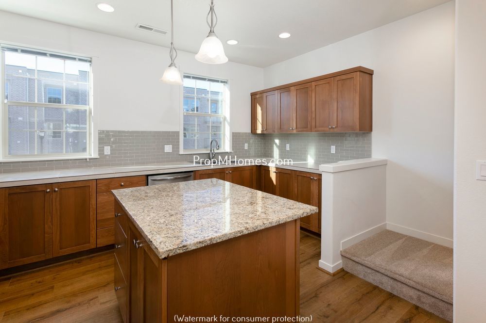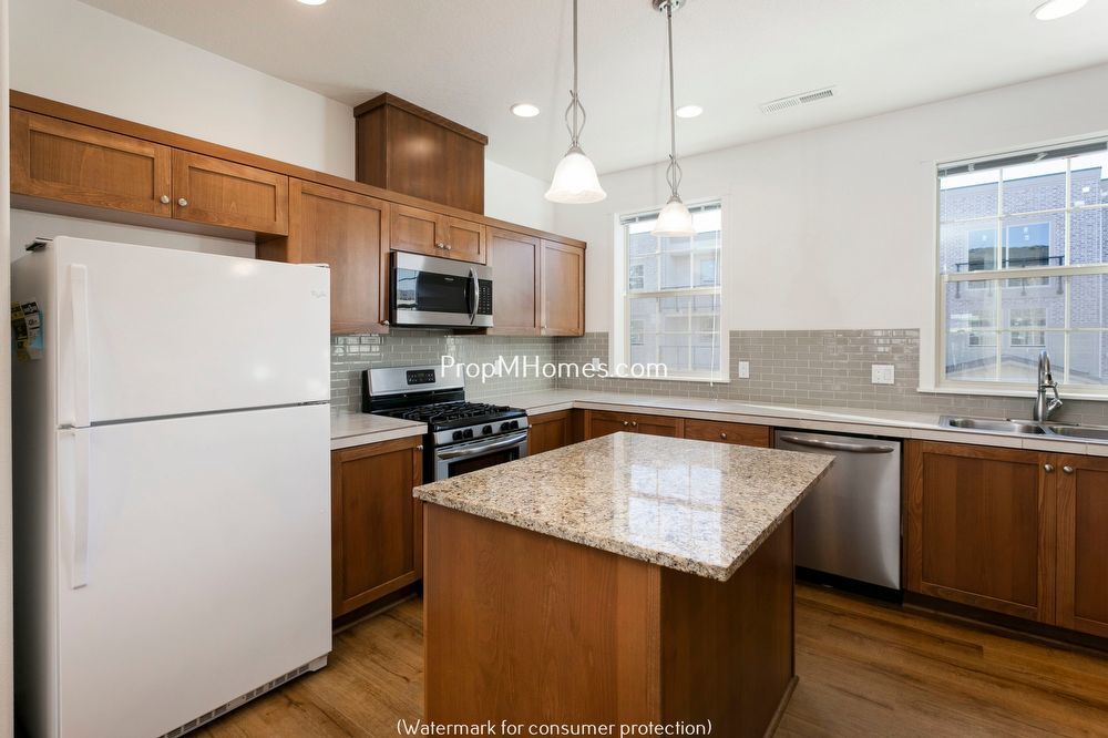 Your gourmet island kitchen is every chef’s dream, featuring sleek granite countertops, custom cabinetry, and a chic glass tile backsplash. Equipped with all the modern appliances—refrigerator, gas range, microwave, and dishwasher—it’s ready for everything from weeknight dinners to weekend brunches.
