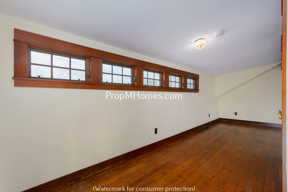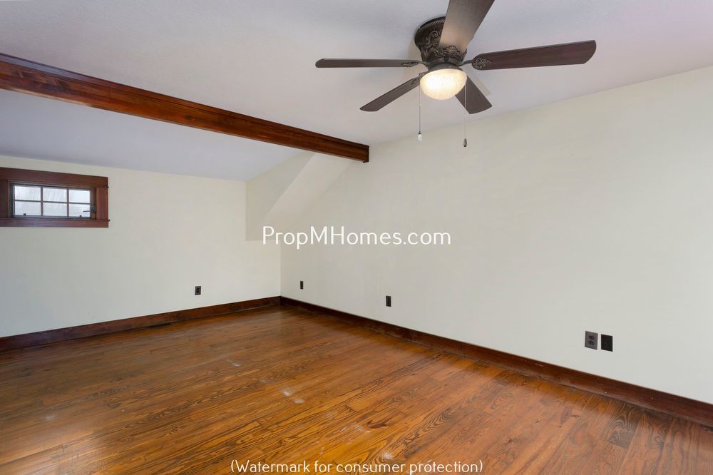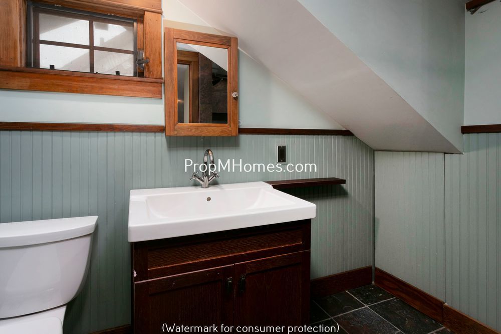 This charming home offers three bedrooms and two bathrooms. The main level features two cozy bedrooms connected by a Jack and Jill bathroom, complete with a classic clawfoot tub, a pedestal sink, and a mirrored medicine cabinet, creating a nostalgic yet functional space. Upstairs, a spacious loft bedroom offers ample room for both relaxation and productivity, highlighted by a ceiling fan and an open area perfect for an office or TV nook. A smaller loft area with access to a balcony provides a peaceful retreat. The second bathroom includes a walk-in shower and a sleek sink vanity. Additionally, an unfinished basement provides generous storage space.
