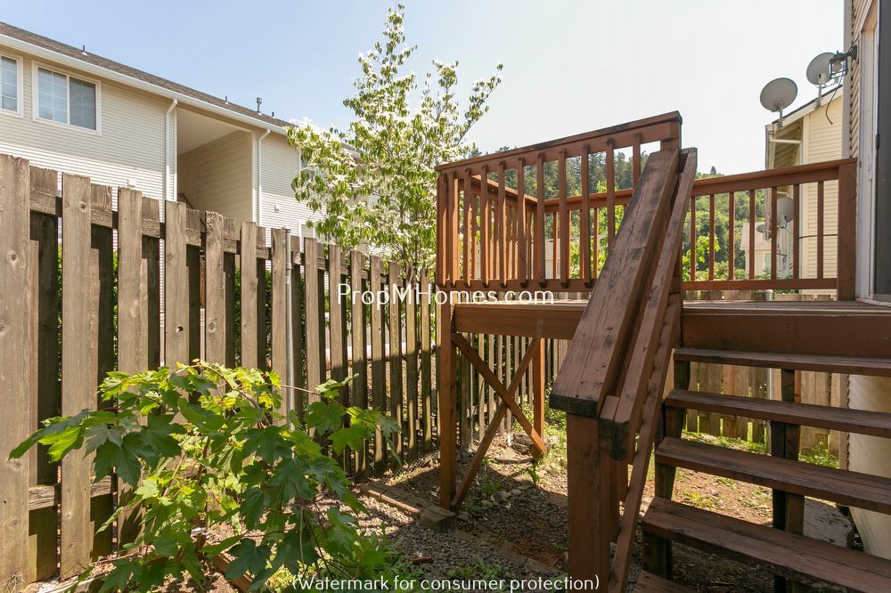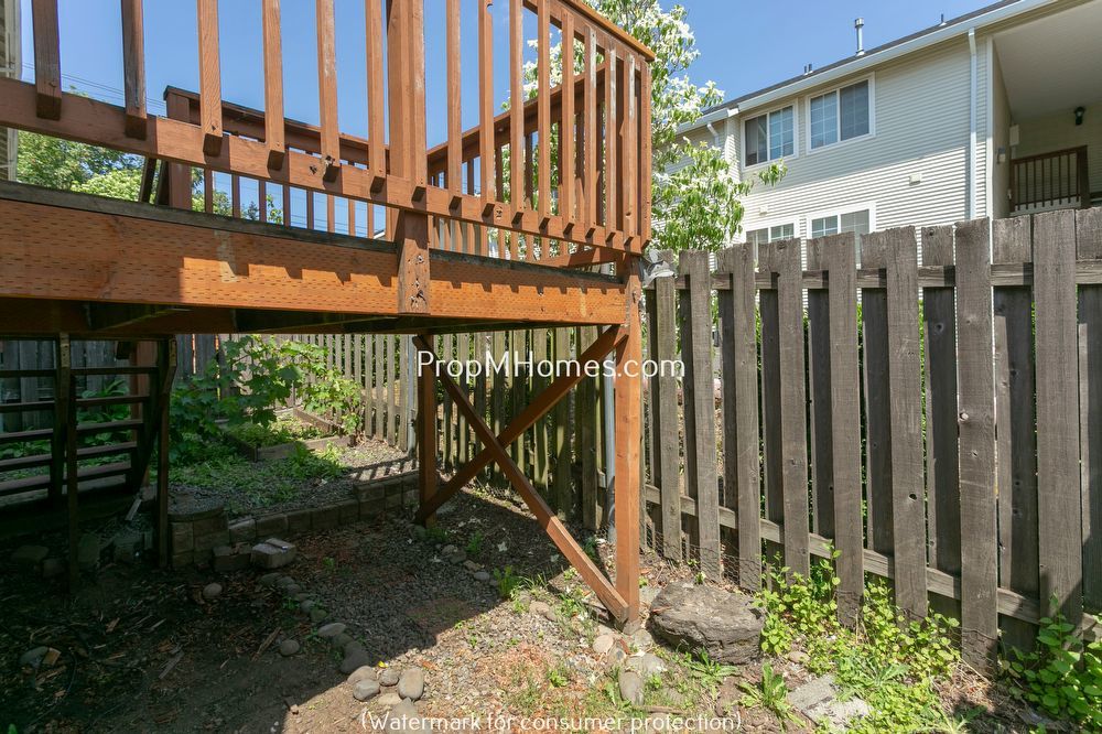 -Private fenced backyard with elevated deck—perfect for outdoor relaxation or entertaining