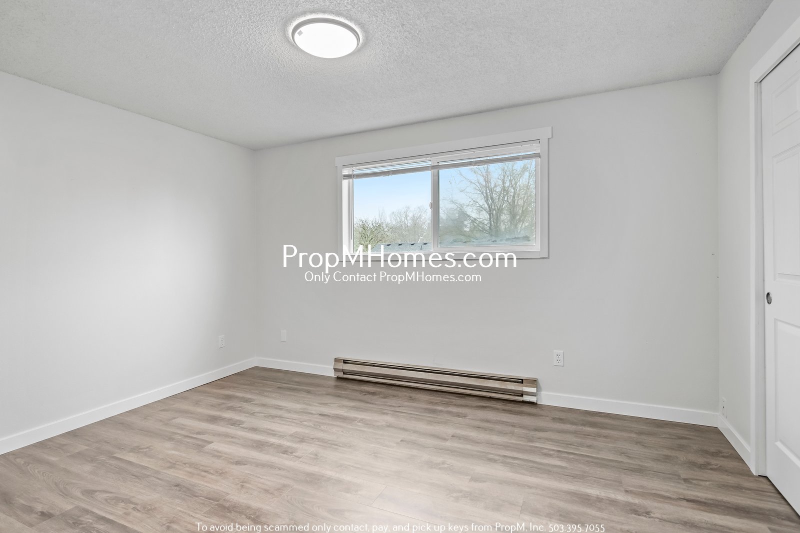 Step into a light-filled, spacious living area with large windows that frame views of the quiet street. This inviting space features wood-like modern flooring and a neutral color palette, creating a perfect canvas for your personal style.